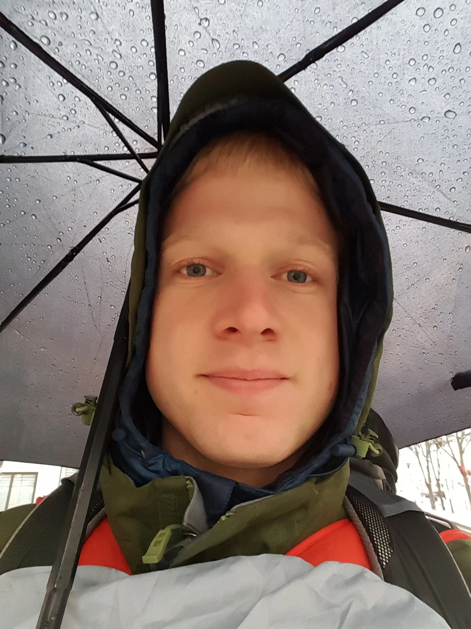 This was BEFORE I got soaking wet. That umbrella didn't hold up too well.