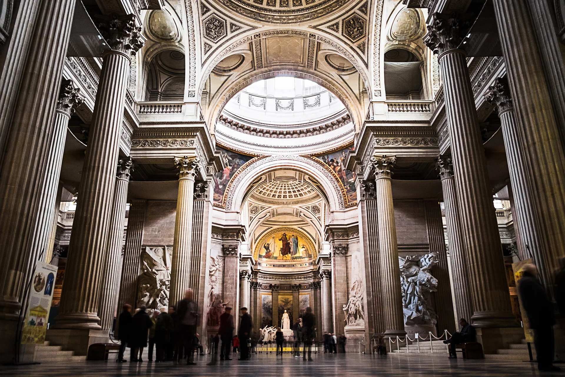 My brother advised me to visit the Pantheon, and he was completely right in his assessment. Notre Damme is beautiful, but it quickly becomes a tourist cluster-fuck after 10:00am. Luckily I got in well before that. You can feel its history, but the constant click of cameras and sight of selfie-sticks is just so out of place for an active place of worship. I left, crossed the River Seine, and headed to the Pantheon. Not only are some incredibly influential people entombed here, but the entire location is just covered with beautiful paintings. Not to mention the fantastic architecture. I couldn't help but take a photo.